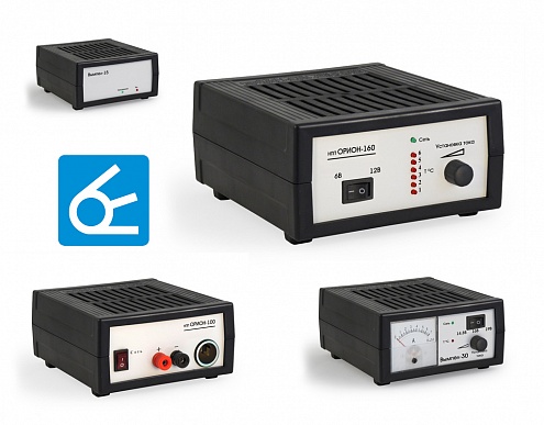 Зарядные устройства для всех типов автомобильных аккумуляторов с напряжением 12В, 24В. Всегда в наличии универсальные устройства с регулировкой для заряда разных типов батарей. Зарядное устройство Вымпел оснащено защитой (в зависимости от модели) от короткого замыкания, переплюсовки, перегрева. Многие модели можно использовать в качестве блока питания для разнообразного оборудования. Во многих моделях зарядных устройствах предусмотрены системы индикации, позволяющие получать необходимую информацию. Зарядники от ООО "НПП "ОРИОН" способны удовлетворить Ваши потребности.