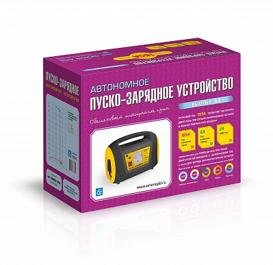 Предназначено для помощи АКБ при пуске двигателя автомобиля с напряжением 12 В, а также для заряда аккумуляторных батарей. При пуске не требует наличия электрической сети 220 В.
