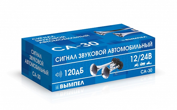 Звуковой сигнал предназначен для предупреждения потенциально опасных ситуаций. Некоторых устраивает штатное устройство, другие хотят красивое звучание, третьи стремятся получить как можно более мощный звуковой сигнал.Пневматический звуковой сигнал Вымпел CA-30 - это мощное дополнительное устройство для привлечения внимания на дороге. Сигнал комплектуется встроенным электромагнитным клапаном, который работает в диапазоне 10..30В. Для работы сигнала необходим компрессор (в комплект не входит).