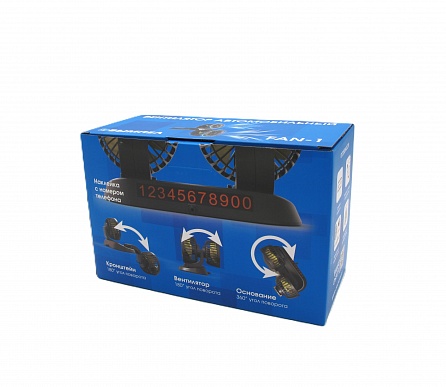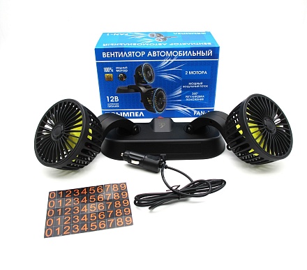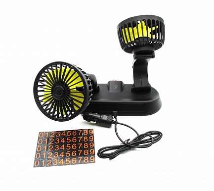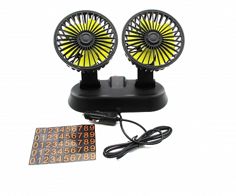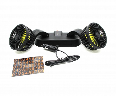 Вентилятор автомобильный Fan1 12 В, с наклейкой с номером телефона, двойной, поворотный, 2 скорости, 4 дюйма, черный предназначен для использования в автомобиле. Он имеет подключение через стандартный разъем прикуривателя.Данный вентилятор имеет двойную конструкцию, что обеспечивает более эффективное охлаждение. Он также обладает поворотной функцией, которая позволяет направлять поток воздуха в нужном направлении.