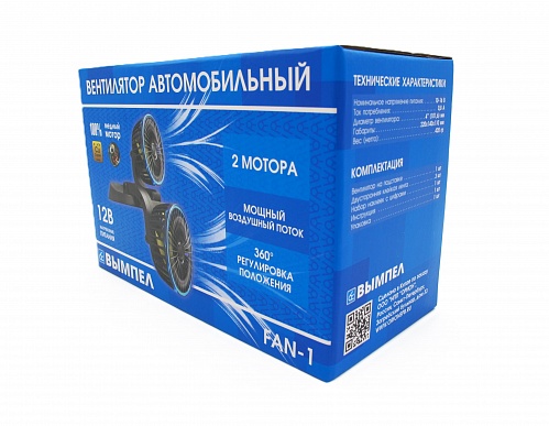 Вентилятор автомобильный Вымпел Fan-1 (12В, 2 скорости)