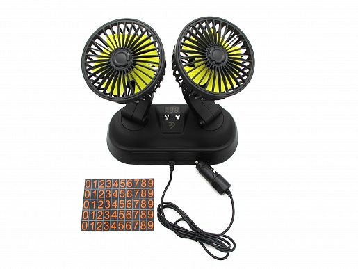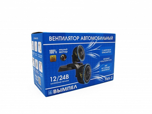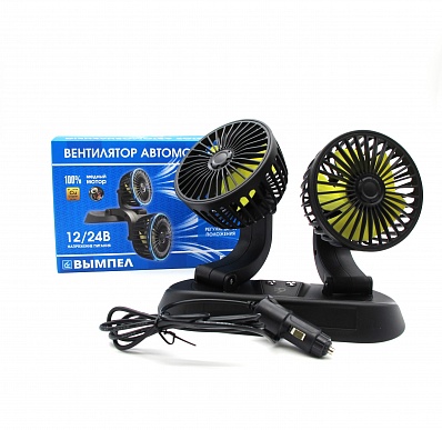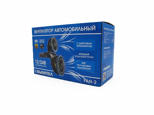 Вентилятор автомобильный Вымпел Fan-2 (12-24В,3 скорости, цифр.термометр)