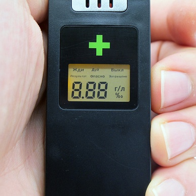 ВНИМАНИЕ: максимально допустимый уровень алкоголя в крови ‰ (промилле) для допущения к вождению автомобилем различается в зависимости от страны. В Российской Федерации максимально допустимый предел составляет 0,35‰, и этот тестер откалиброван для этого предела. Если результат теста соответствует (> 0,35‰), мы настоятельно рекомендуем НЕ садиться за руль. Водителю грозит штраф и лишение водительских прав.
