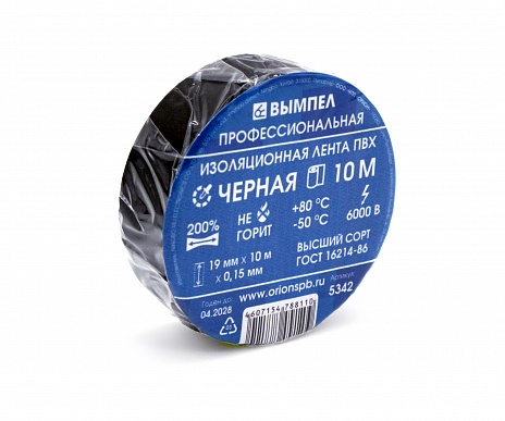 Изоляционная лента ПВХ "ВЫМПЕЛ" (19мм / 10м / чёрная)
