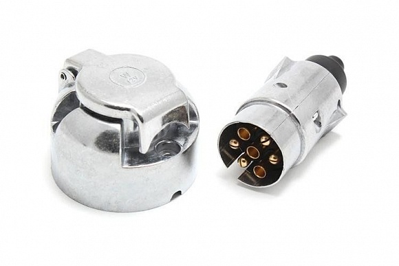 Разъем розетки прицепа (вилка+розетка), необходим для самостоятельного подключения автоприцепа к автомобилю. Подключение требуется для обеспечения безопасной эксплуатации несамоходной прицепной техники. Соединение происходит с использованием розетки (расположена у фаркопа) и соответствующего штекера, подключенного к проводке прицепа.Используя соединительные разъёмы, можно объединить электрические схемы технических средств: электрический ток, подаваемый от автомашины, будет задействовать поворотные сигналы, габаритные огни и подсветку номерного знака автоприцепа.