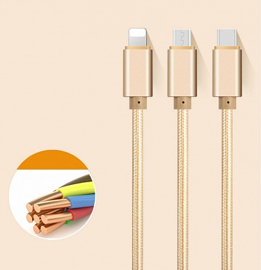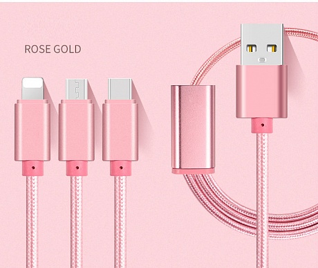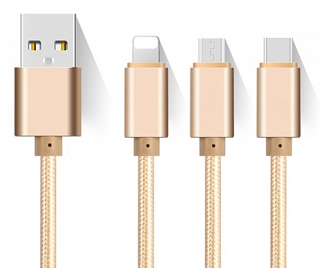 USB кабель (3 в 1) Lightning, microUSB, type C