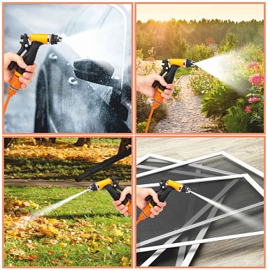 Автомобильная портативная мойка – это компактное приспособление, которое не займет много места в гараже и легко поместится в багажнике вашего авто. С помощью автомобильной мойки Вы легко очистите свой автомобиль после пыльной дороги и придадите ухоженный вид садовой технике и инвентарю.Пистолет автомобильной мойки выполнен из прочного пластика, ручка имеет рельефную прорезиненную поверхность, что позволяет прочно удерживать устройство в руке. Регулировать мощность струи и поток воды можно с помощью вращающейся головки на пистолете.