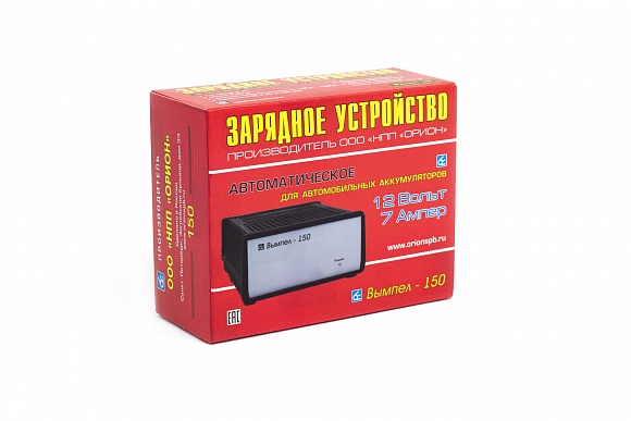 Зарядное устройство производства ООО "НПП Орион" Вымпел-150 предназначено для заряда автомобильных и мотоциклетных 12В аккумуляторов. Устройство может заряжать как частично,так и полностью разряженный аккумулятор любой ёмкости в полностью автоматическом режиме. Зарядное устройство при своих небольших размерах весит всего 750 гр. Что всегда позволит взять его с собой в любую поездку. Прибор очень прост в использовании. Зарядное устройство имеет два светодиодных индикатора и автоматическое отключение при пороговом напряжении в 15 В. Так же защищено от и коротких замыканий.