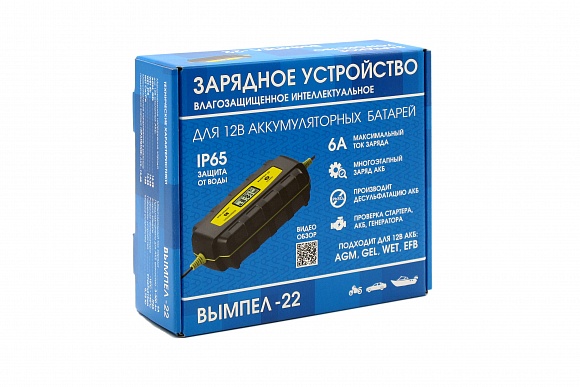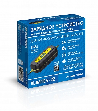 Влагозащищенное интеллектуальное зарядное устройство предназначено для заряда 12В автомобильных аккумуляторных батарей любой емкости в автоматическом режиме (автоматическое уменьшение тока в конце заряда).