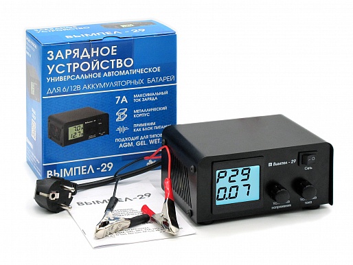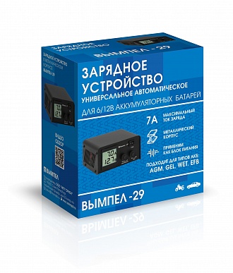 Зарядное устройство предназначено для заряда автомобильных и мотоциклетных 6/12В аккумуляторных батарей (АКБ), в том числе полностью разряженных (до нуля), любого типа и емкости в полностью автоматическом режиме с возможностью ручной регулировки силы зарядного тока. Металлический корпус.
