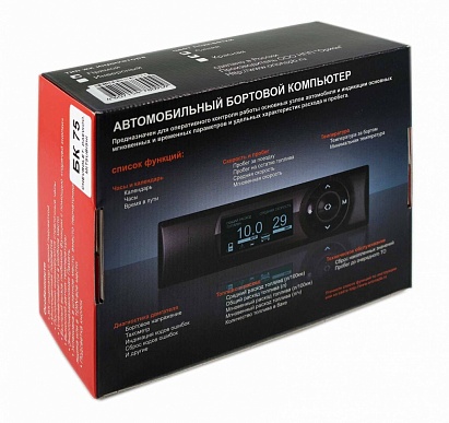 Автомобильный бортовой компьютер БК - 75 предназначен для оперативного контроля работы основных узлов автомобиля и предназначен для установки на автомобили: MITSUBISHI Lancer, Galant, Space Star, Carisma, HYUNDAI Accent, Gets, KIA Rio, Sportage, Spectra, CHEVROLET Aveo, Lacetti (выпущенные после 2000г.), оснащенные инжекторным двигателем и поддерживающие обмен данными по универсальным диагностическим протоколам ISO 9141, ISO 14230 (коннектор OBD II).