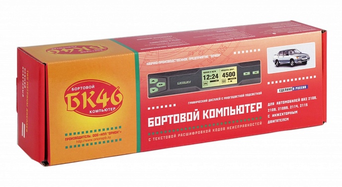 Автомобильный бортовой компьютер БК-46 предназначен для оперативного контроля работы основных узлов автомобиля и предназначен для установки в штатное место на автомобили ВАЗ 2108, ВАЗ 2109, ВАЗ 21099, ВАЗ 2115, ВАЗ 2120, оснащенные инжекторным двигателем с электронными блоками управления: Январь 5…, Bosch M1.5.4, Bosch М1.5.4N., Bosch MP 7.0 (Euro 2,3), VS 5.1 Ителма, Bosch MP 7.9.7 (Bosch 80), Январь 7.2.