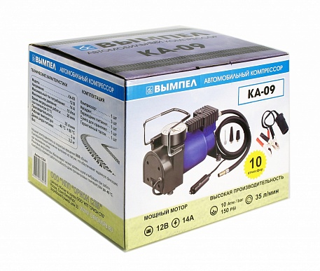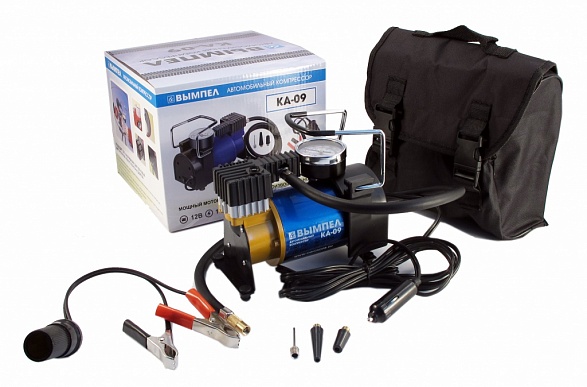 Автомобильный компрессор 12 В Вымпел КА-09 предназначен для быстрой накачки автомобильных камер и шин. В комплектацию входят три переходника с помощью которых вы сможете накачивать лодки,велосипедные камеры,матрасы,шары и т.д.Особенности