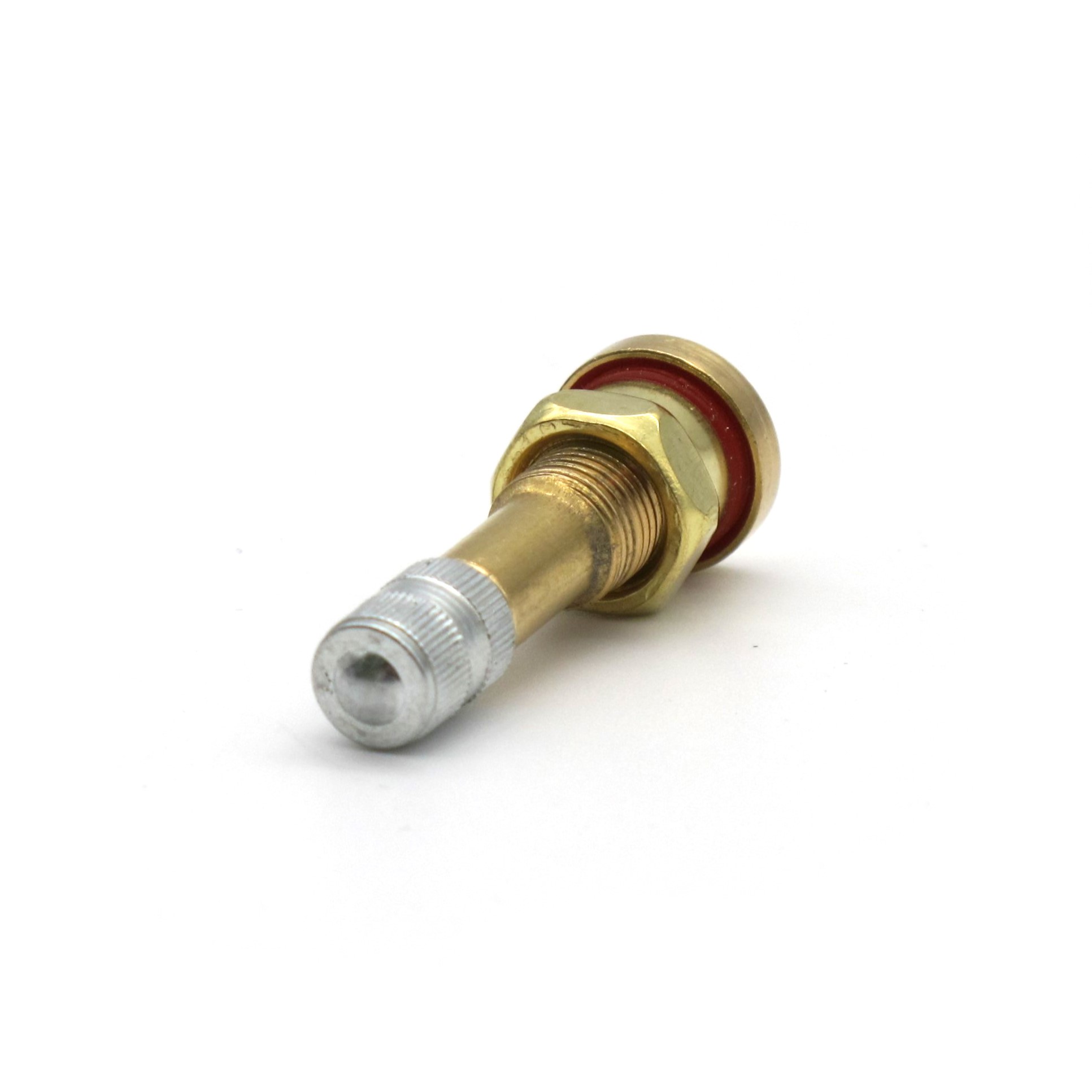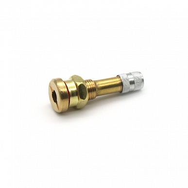 Вентиль грузовой для бескамерных шин V3.20.1 (TR-41MS) - надежный аксессуар для тяжелогрузовых шин, предназначенный для установки в радиальные бескамерные покрышки грузовиков, автобусов и спецтехники. Модель с прямым штуцером и круглым отверстием диаметром 9,7 мм обеспечивает герметичное соединение с манометрами, насосами и системами контроля давления. Изготовлен из латуни с хромированным покрытием для долговечности в суровых условиях эксплуатации.