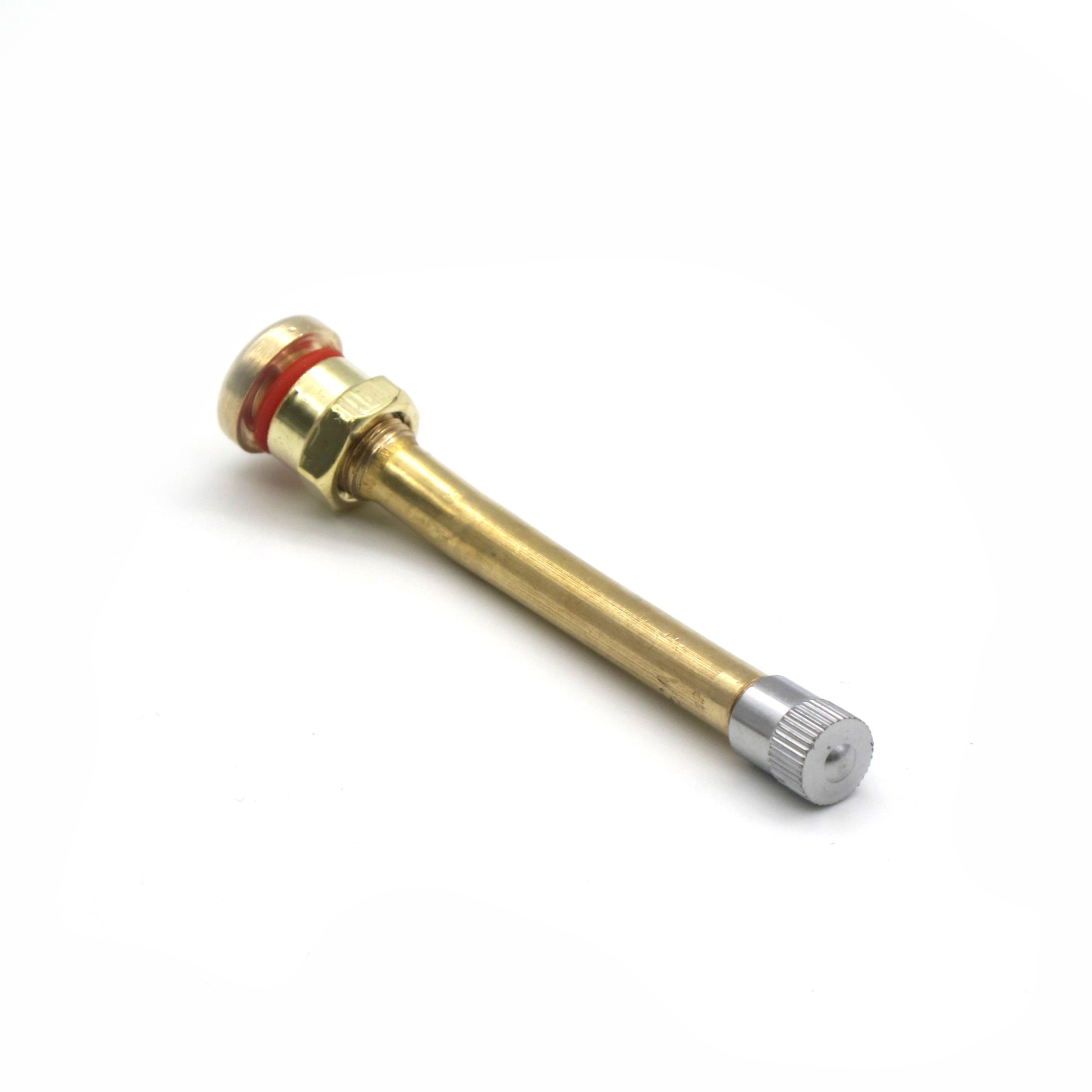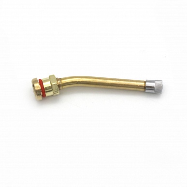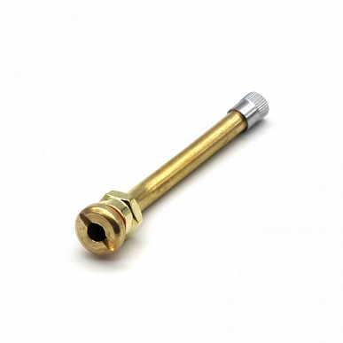 Вентиль грузовой для бескамерных шин V3.20.4 (TR-90MS) с круглым отверстием диаметром 9,7 мм и углом изгиба 27° (упаковка 10 шт.) предназначен для грузовых автомобилей и автобусов. Это латунный разборный вентиль общей длиной 90 мм (30 мм резьбовая часть + 60 мм отвод), который обеспечивает надежную накачку и герметизацию шин. Он поставляется в сборе с золотником и колпачком, подходит для стандартных дисков с отверстием 9,7 мм.