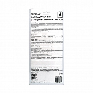 Пистолет для подкачки шин с глицериновым манометром 6bar №4