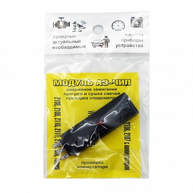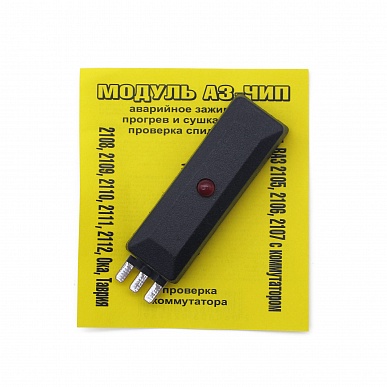 Модуль АЗ-ЧИП 1 используется в качестве аварийного зажигания при выходе из строя датчика Холла. Рекомендованная скорость движения не более 70 км/ч. Модуль можно использовать для прогрева и сушки свечей, для проверки электронного коммутатора.