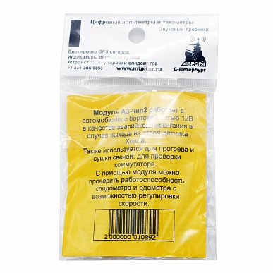 Модуль АЗ-ЧИП 2 используется в качестве аварийного зажигания при выходе из строя датчика Холла. Рекомендованная скорость движения не более 70 км/ч. Модуль можно использовать для прогрева и сушки свечей, для проверки электронного коммутатора. Модуль позволяет регулировать скорость для проверки спидометра и одометра.