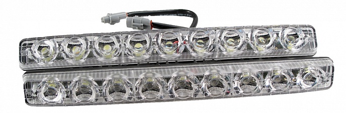 Автомобильные ходовые огни имеют 9 ярких светодиодов, выполнены в алюминиевом корпусе и имеют надёжную фиксацию с кронштейнами. Устанавливаются на передней части автомобиля и служат для улучшения видимости транспортного средства в светлое время суток..