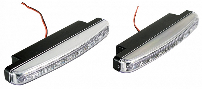 Автомобильные ходовые огни DRL-L8 3528 SMD имеют 8 ярких светодиодов, выполнены в пластиковом корпусе и имеют надёжную фиксацию при помощи металлических кронштейнов. Устанавливаются на передней части автомобиля и служат для улучшения видимости транспортного средства в светлое время суток.