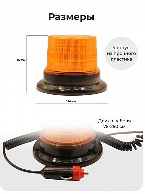 Проблесковый маяк (мигалка) JSD-1 (оранж. LED, 12-24В, магнит, разъем прикур.)