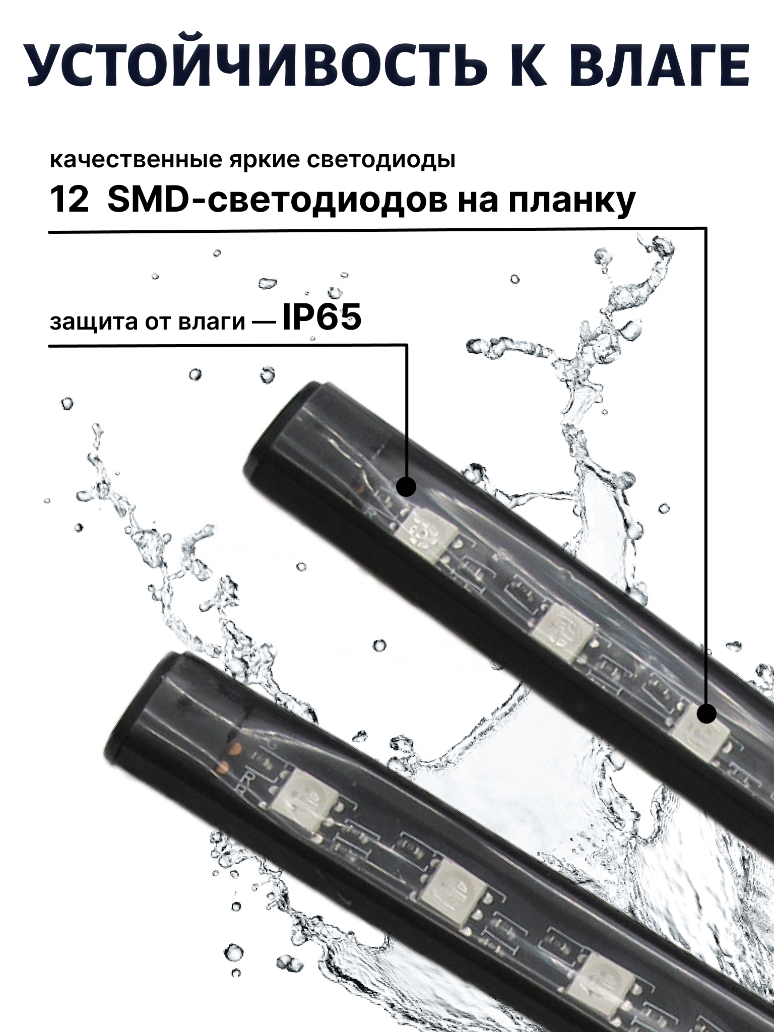 - 12 ярких SMD‑светодиодов на планку