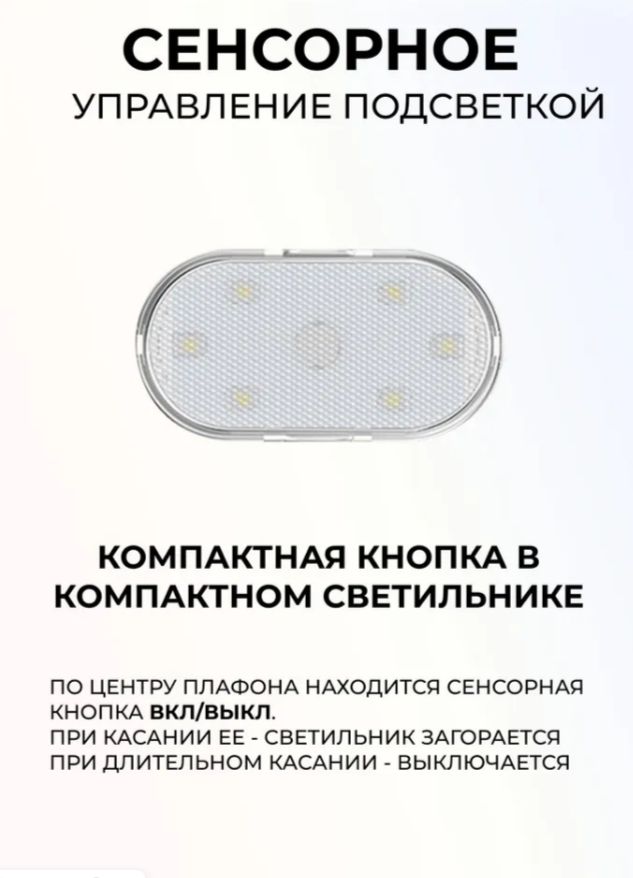 Яркая и компактная овальная лампа с 6 SMD-светодиодами и центральной линзой предназначена для декоративной и функциональной подсветки салона (пола/багажника/бардачка). Обеспечивает равномерное многоцветное освещение, помогает создать атмосферу и улучшить видимость в темное время.