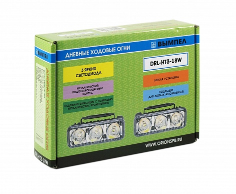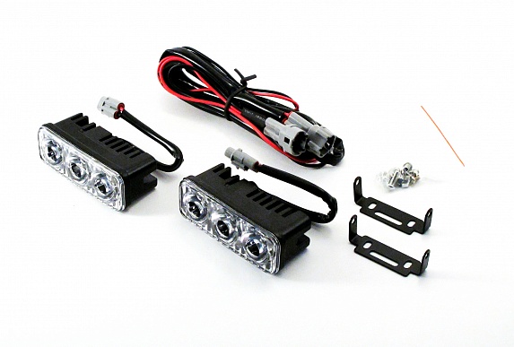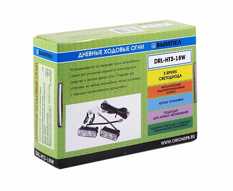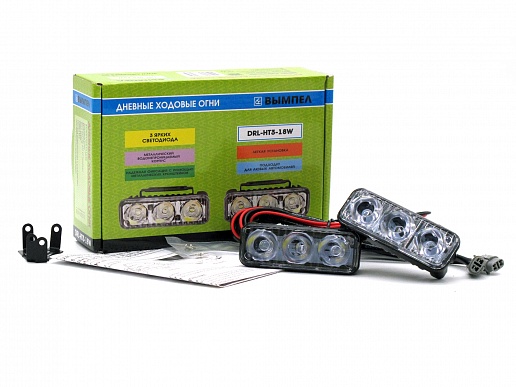DRL-HT3-18W - сверхъяркие дневные ходовые огни. Имеют 3 ярких, линейно расположенных светодиодов. Ходовые огни устанавливаются на передней части автомобиля и служат для улучшения видимости транспортного средства в светлое время суток.