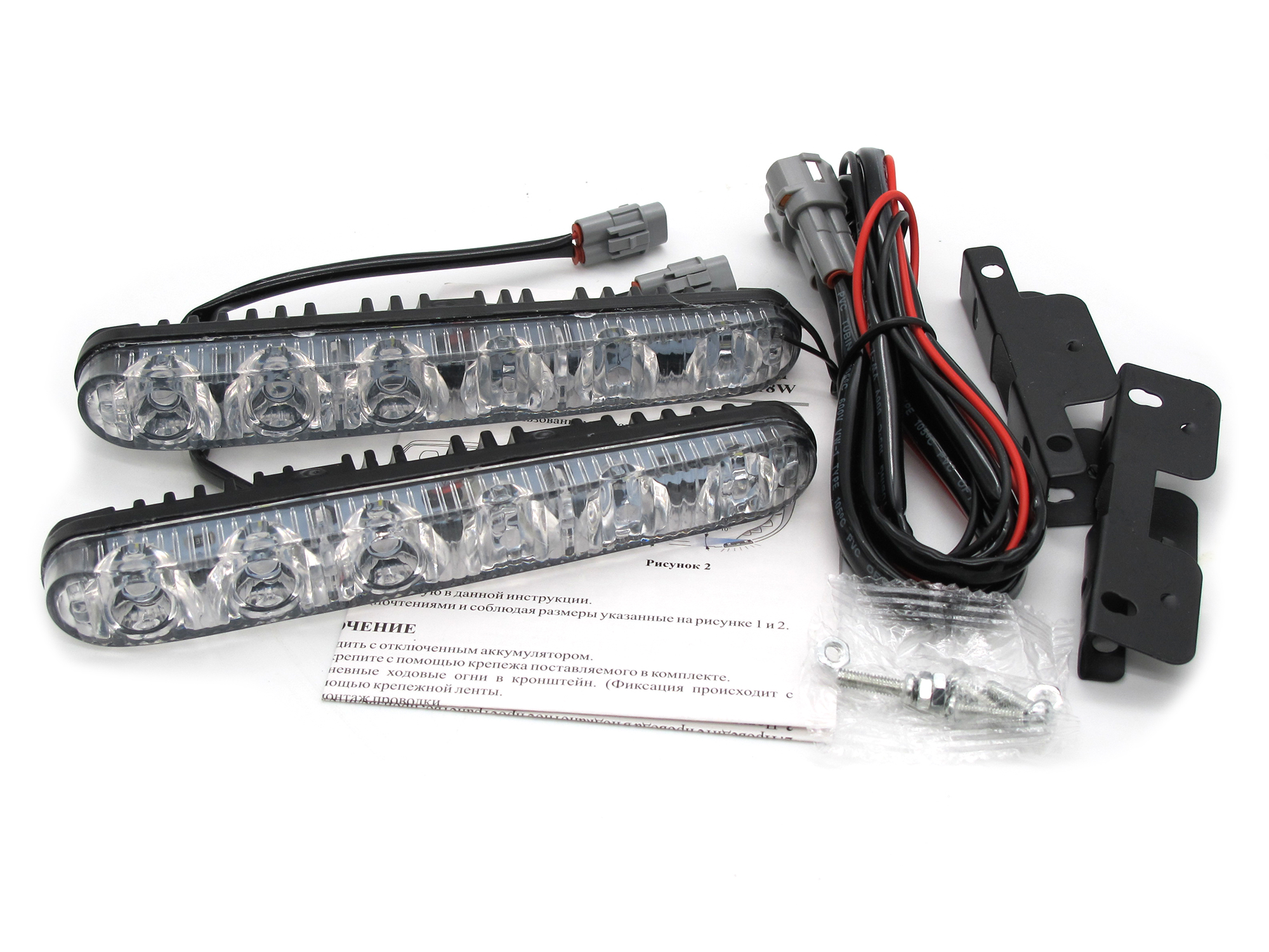 Автомобильные ходовые огни имеют 6 ярких светодиодов, выполнены в металлическом корпусе и имеют надёжную фиксацию с кронштейнами. Устанавливаются на передней части автомобиля и служат для улучшения видимости транспортного средства в светлое время суток.