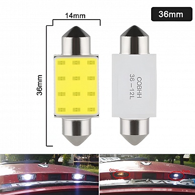 LED лампа (2 ШТ) С5W (T11x36мм), 1SMD (COB), 12В, белый 6000К, освещения салона, багажника