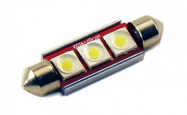 LED лампа C5W (41 мм) 3SMD (COB) CAN BUS WHITE устанавливается в стандартный цоколь c5w (41 мм) или HT-07. Особенность данной лампы – использование COB SMD светодиодов, которые являются усовершенствованной версией SMD-светодиодов.