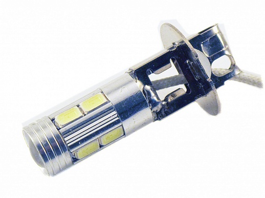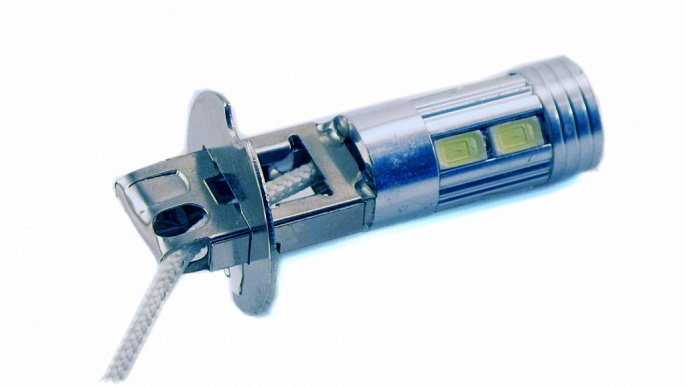 Светодиодная лампа H3 10SMD отличается интенсивным ярким свечением и длительным сроком службы за счет качественной пайки светодиодов, большого количества светодиодов (10 штук на каждой лампе) и наличия линзы. Поскольку светодиод является точечным источником света (из-за своих малых размеров) и характеризуются малым углом рассеивания светового потока (менее 120°) наличие линзы крайне необходимо. Линза и рефлекторы позволяют создать кривые силы света, отвечающие всем требованиям правил дорожного движения, увеличить угол рассеивания (до 300°). Устройство не перегревается и обладает малым весом за счет алюминиевого корпуса. Устанавливается в штатное место. Обладает низким энергопотреблением. Мощность эквивалент ламп накаливания 30 Вт.