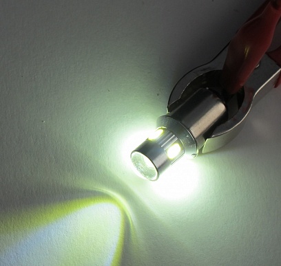 Светодиодная лампа P21/5W (BA15D-1157) 6SMD (5630) LENS WHITE отличается интенсивным ярким свечением и длительным сроком службы за счет качественной пайки светодиодов, большого количества светодиодов (33 штуки на каждой лампе) и наличия линзы. Поскольку светодиод является точечным источником света (из-за своих малых размеров) и характеризуются малым углом рассеивания светового потока (менее 120°) наличие линзы крайне необходимо. Линза и рефлекторы позволяют создать кривые силы света, отвечающие всем требованиям правил дорожного движения, увеличить угол рассеивания (до 300°). Устройство не перегревается и обладает малым весом за счет алюминиевого корпуса. Устанавливается в штатное место.