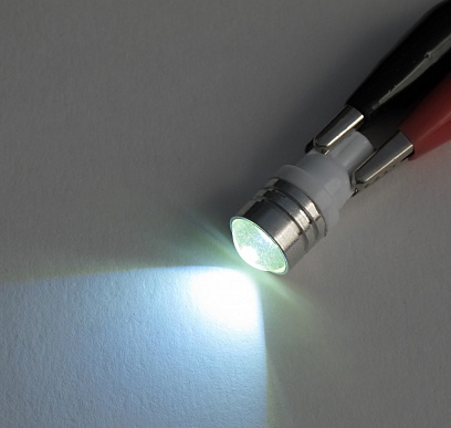 Светодиодная лампа W5W (T10) 1SMD (COB) LENS WHITE отличается интенсивным ярким свечением и длительным сроком службы за счет качественной пайки светодиодов и наличия линзы. Поскольку светодиод является точечным источником света (из-за своих малых размеров) и характеризуются малым углом рассеивания светового потока (менее 120°) наличие линзы крайне необходимо. Линза и рефлекторы позволяют создать кривые силы света, отвечающие всем требованиям правил дорожного движения, увеличить угол рассеивания (до 300°). Устройство не перегревается и обладает малым весом за счет алюминиевого корпуса.