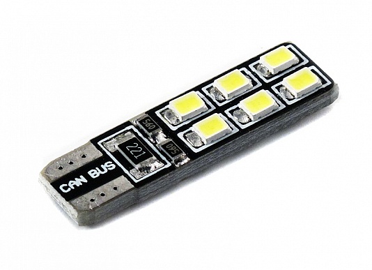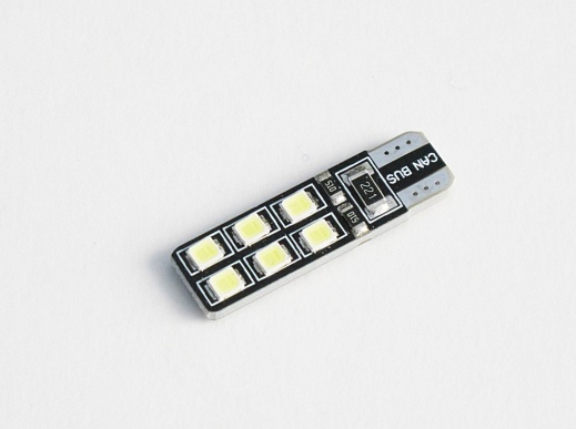 Светодиодная лампа W5W (T10) 12SMD (2835) CAN BUS WHITE отличается интенсивным ярким свечением и длительным сроком службы. За счет белого излучения обеспечивается высокая точность передачи цветов и оттенков. Конструкции этих светодиодных источников света отличаются повышенной устойчивостью к вибрациям и механическому воздействию, что позволяет их использовать в автомобильной технике.