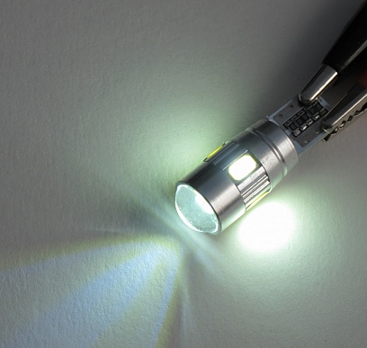 Светодиодная лампа W5W (T10) 6SMD (5630) CAN BUS LENS WHITE отличается интенсивным ярким свечением и длительным сроком службы. За счет белого излучения обеспечивается высокая точность передачи цветов и оттенков. Конструкции этих светодиодных источников света отличаются повышенной устойчивостью к вибрациям и механическому воздействию, что позволяет их использовать в автомобильной технике.