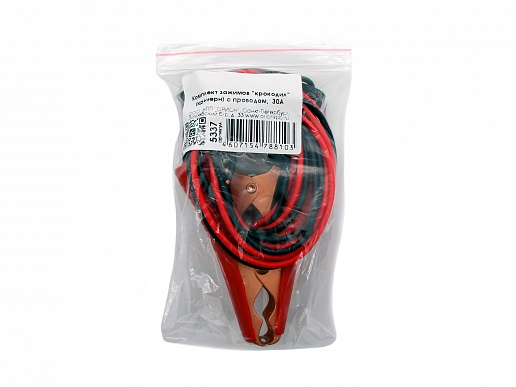 Комплект зажимов "крокодил" (кр+черн) с проводом, 30А