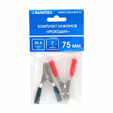 Зажим "крокодил" 75 мм (красный и чёрный)