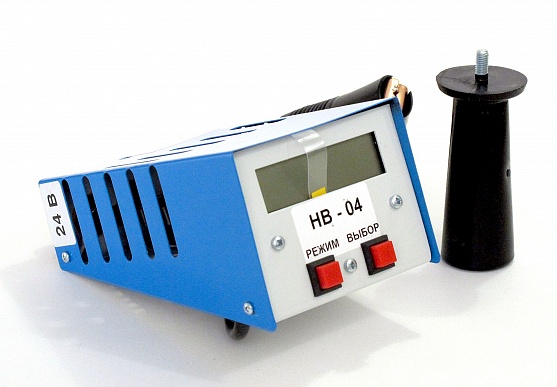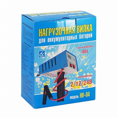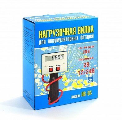 - Нагрузочная вилка НВ-04 имеет две спирали и подходит для проверки тяговых и автомобильных аккумуляторов 24 В - подключается спираль "24 В" (ток нагрузки 100 А) и аккумуляторов 12 В (ток нагрузки 50 А), так и для проверки одного элемента (банки) аккумулятора - подключается спираль "2 В" (ток нагрузки 100 А)