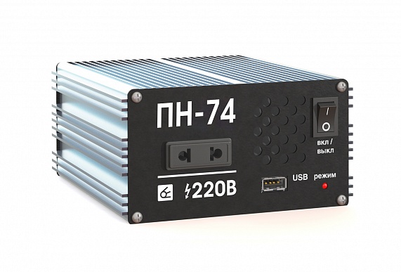 Импульсный преобразователь напряжения Вымпел ПН-74, он же инвертор, служит для преобразования напряжения 24В в эффективное напряжение 220В, чистый синус, благодаря чему от бортовой сети автомобиля можно запитать любые бытовые приборы (мобильный телефон, фен, утюг, ноутбук и т.д.)