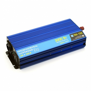 Импульсный преобразователь напряжения Вымпел ПН-152, он же инвертор, служит для преобразования напряжения 12В в эффективное напряжение 220В, чистый синус, благодаря чему от бортовой сети автомобиля можно запитать любые бытовые приборы (мобильный телефон, фен, утюг, ноутбук и т.д.)