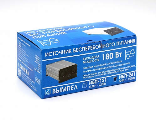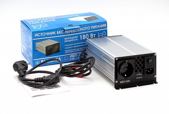 ИБП содержит в своем составе: устройство автоматического заряда (ЗУ) внешней АКБ (в комплект не входит), преобразователь (инвертор) 12В(24В) - 220В 50Гц, устройство автоматического переключения нагрузки, цепи защиты от перегрузки, короткого замыкания, перегрева.