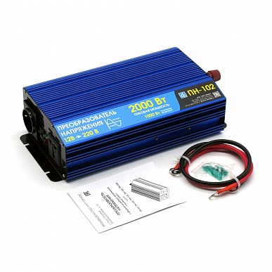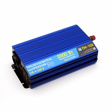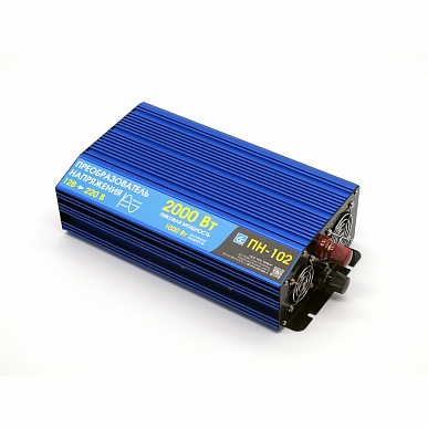 Импульсный преобразователь напряжения Вымпел ПН-102, он же инвертор, служит для преобразования напряжения 12В в эффективное напряжение 220В, чистый синус, благодаря чему от бортовой сети автомобиля можно запитать любые бытовые приборы (мобильный телефон, фен, утюг, ноутбук и т.д.)