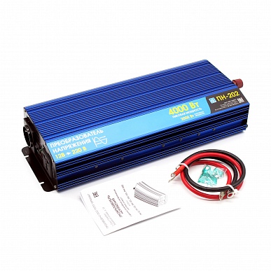 Импульсный преобразователь напряжения Вымпел ПН-202, он же инвертор, служит для преобразования напряжения 12В в эффективное напряжение 220В, чистый синус, благодаря чему от бортовой сети автомобиля можно запитать любые бытовые приборы (мобильный телефон, фен, утюг, ноутбук и т.д.)